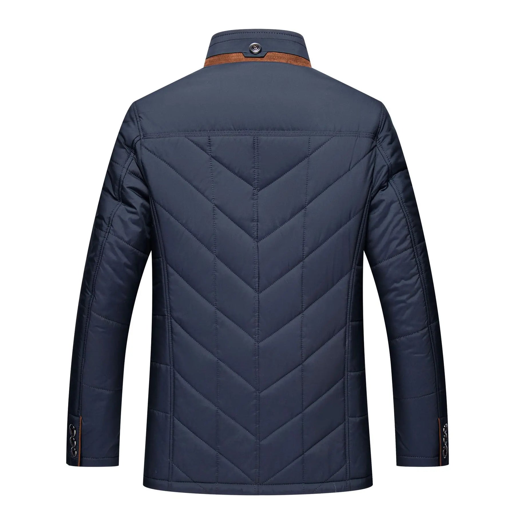 Crafted from high-quality materials, the jacket provides reliable warmth without feeling bulky. The quilted construction helps retain heat, while the smooth inner lining ensures comfort throughout the day. Thoughtful details such as the stand collar, secure button closure, and functional pockets add both style and convenience.